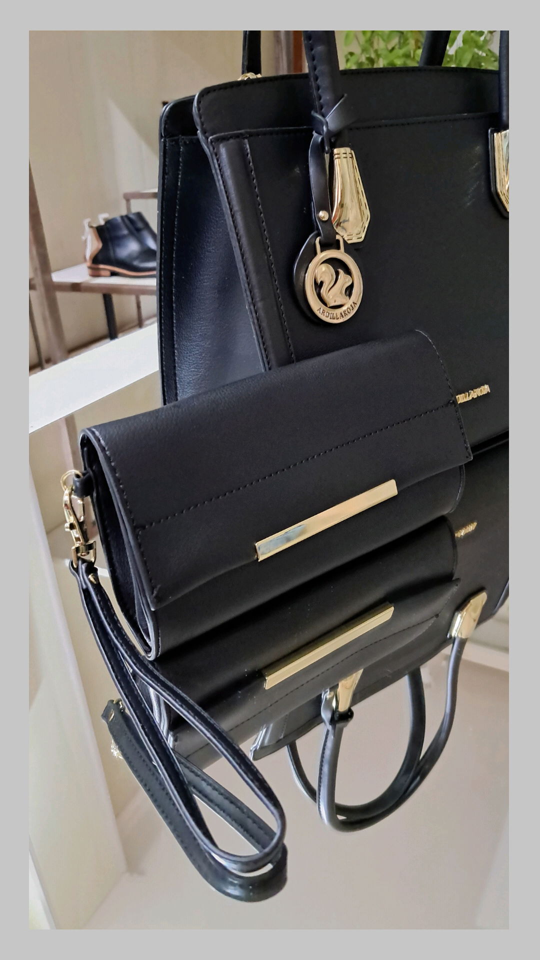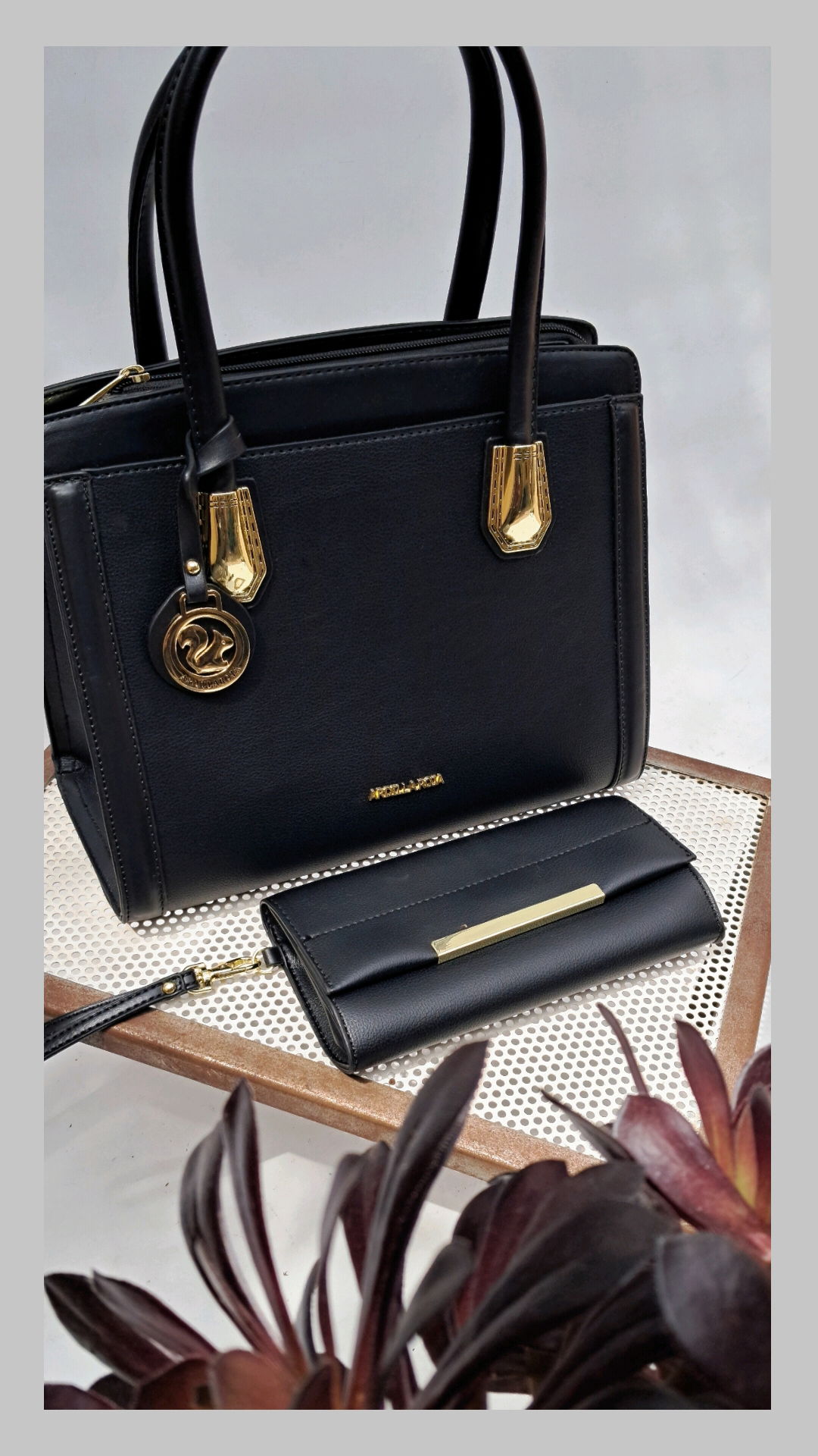 Set de 2 piezas. Incluye cartera y billetera. Material: ecocuero.