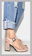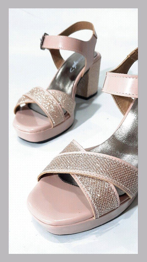 Sandalias de charol y lurex con plataforma y taco de 8 cm. Horma normal. Material ecocuero.