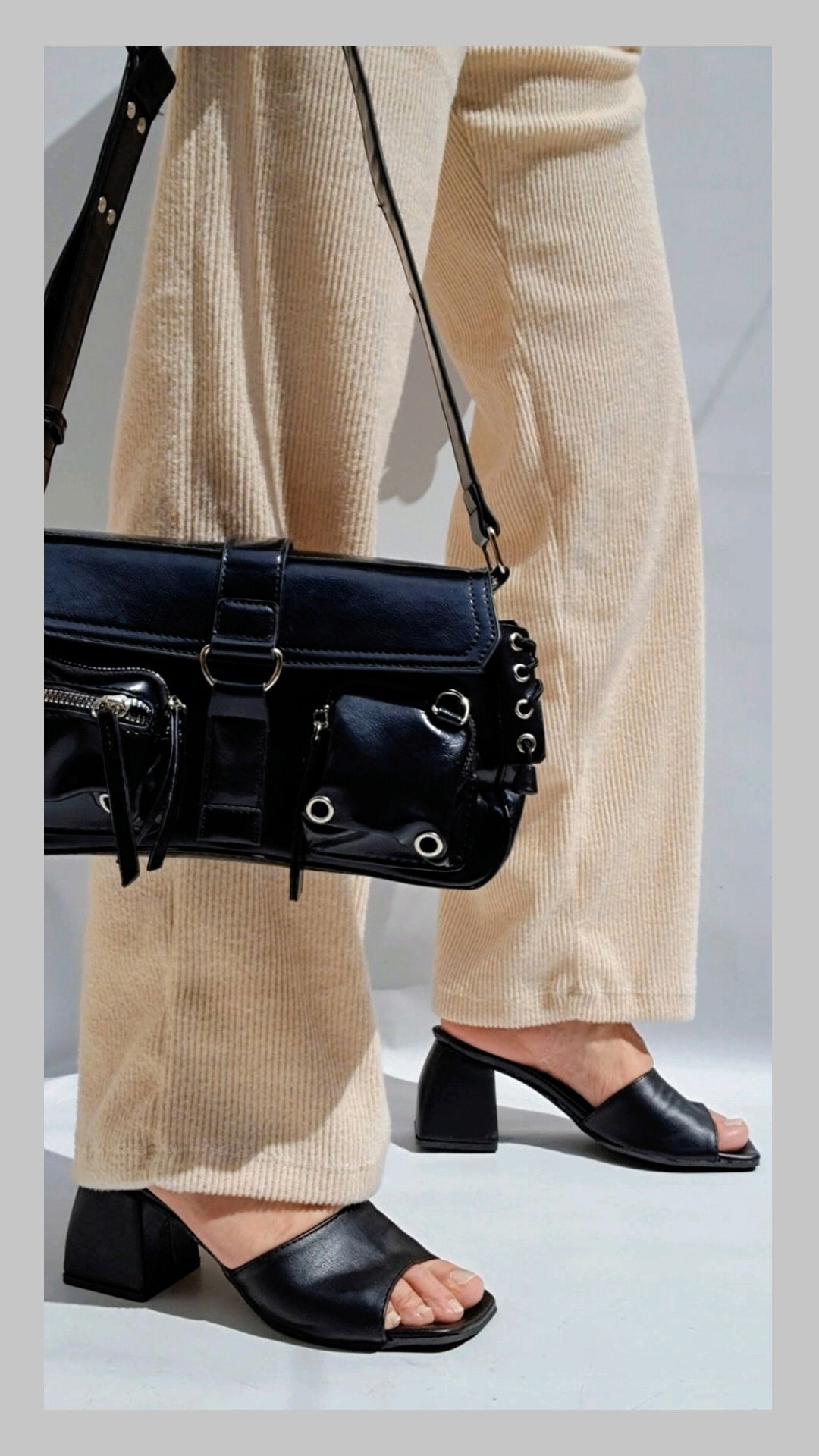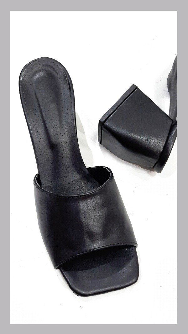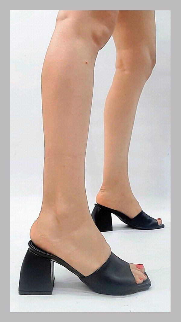 Suecos ecocuero con taco curvo de 8 cm. Horma ajustada.