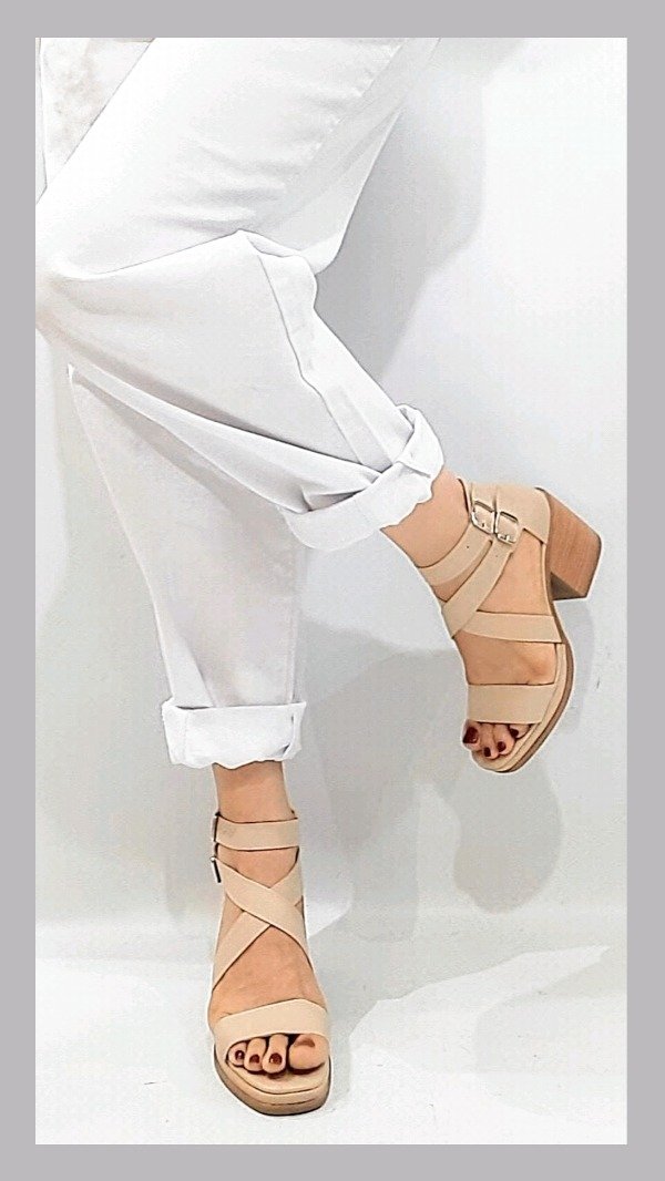 Sandalias cruzadas con mini plataforma y taco de 8 cm. Plantilla acolchada. Horma normal. Empeine bajo. Material ecocuero.