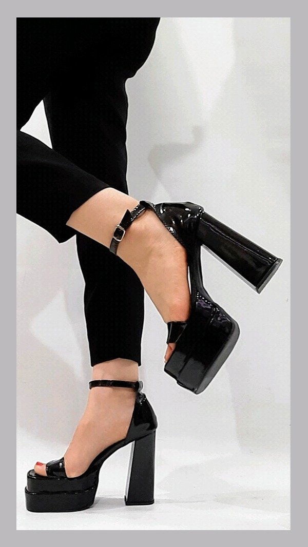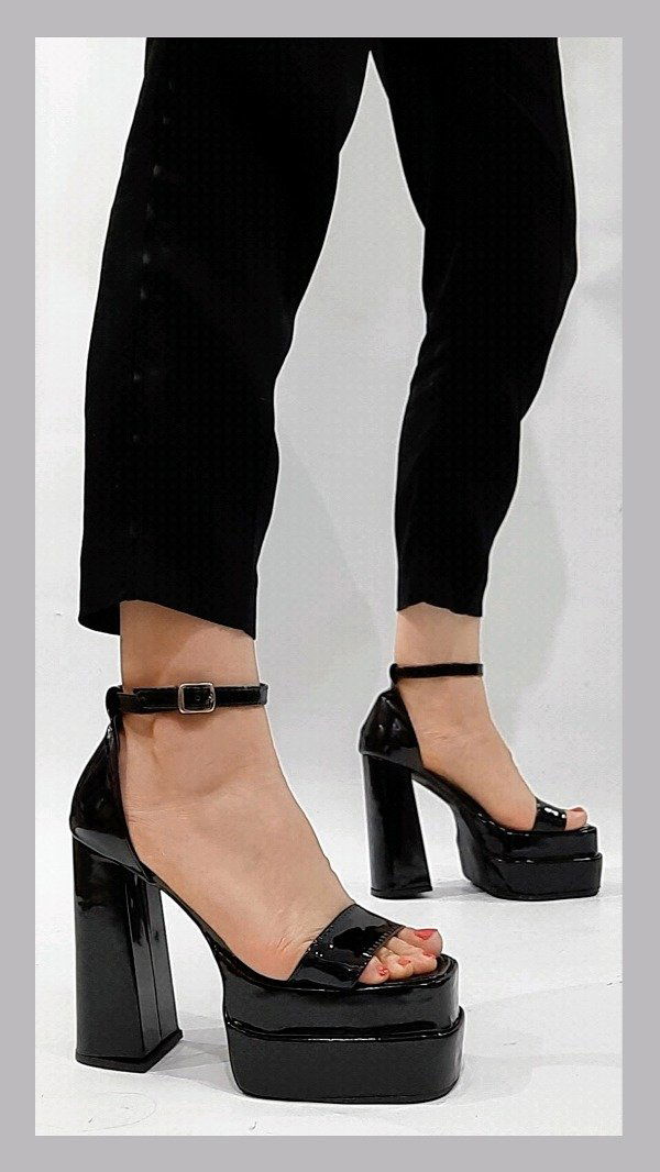 Sandalias con plataformas y talonera.Taco de 12 cm. Horma normal. Material ecocuero.