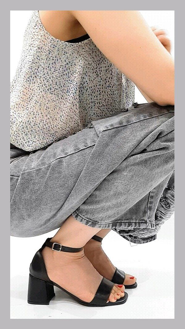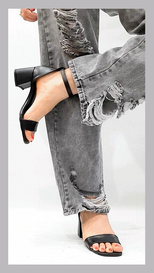 Sandalias con talonera y con taco de 6 cm. Horma normal. Material ecocuero.